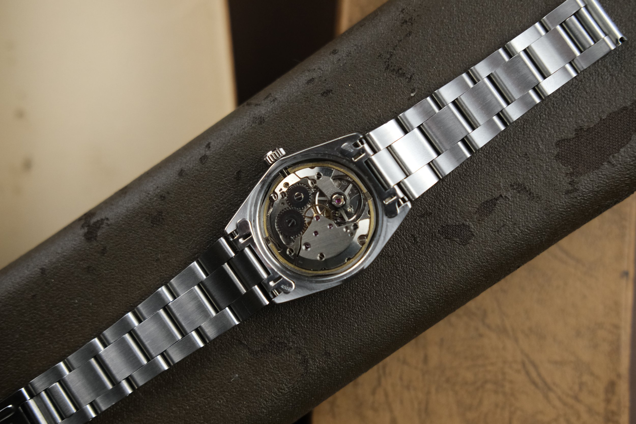 Case Size: The watch sports a classic 34 mm case, a modest size by today’s standards but perfectly suited to the aesthetic and wrist sizes of the period.