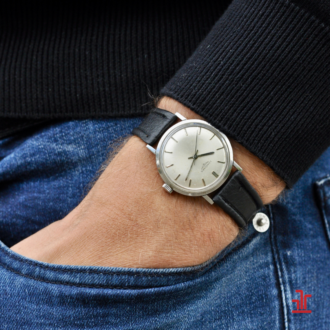 The Longines Classic is a stunning silver-colored timepiece that truly embodies timeless elegance. Featuring a refined silver dial paired with a black leather strap, this watch offers a sophisticated look suitable for any occasion. The strap is secured with an original Longines buckle, enhancing its authentic appeal. This watch combines classic design with reliable craftsmanship, making it a must-have for any watch enthusiast.
