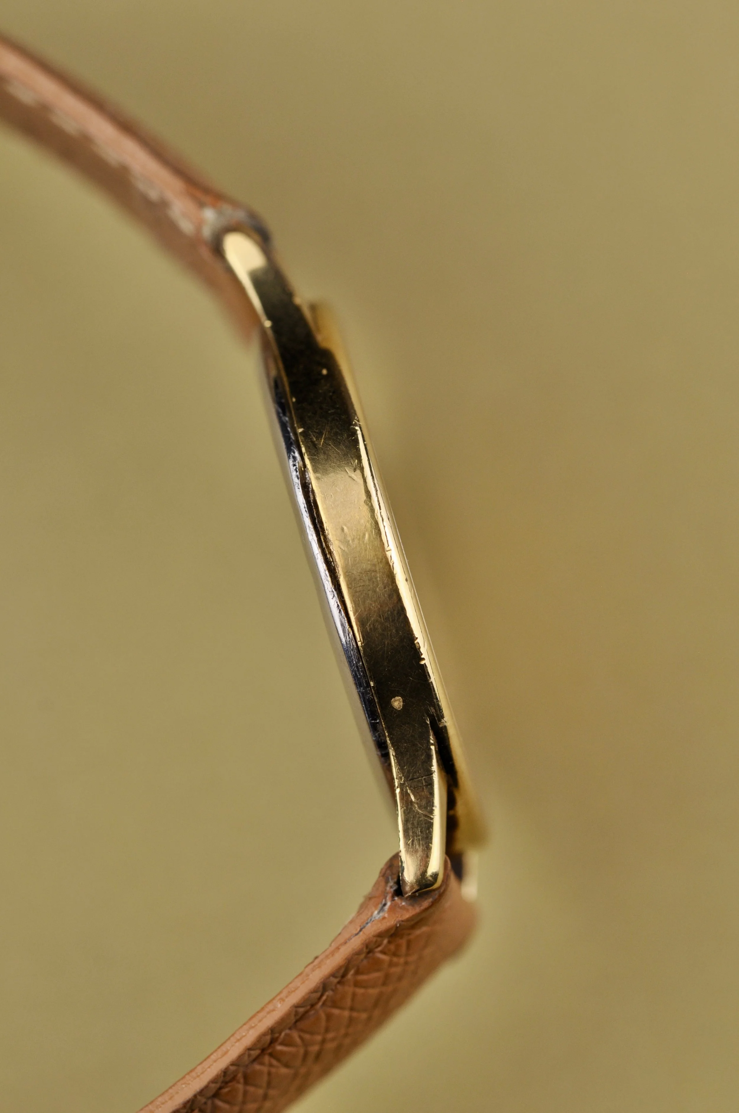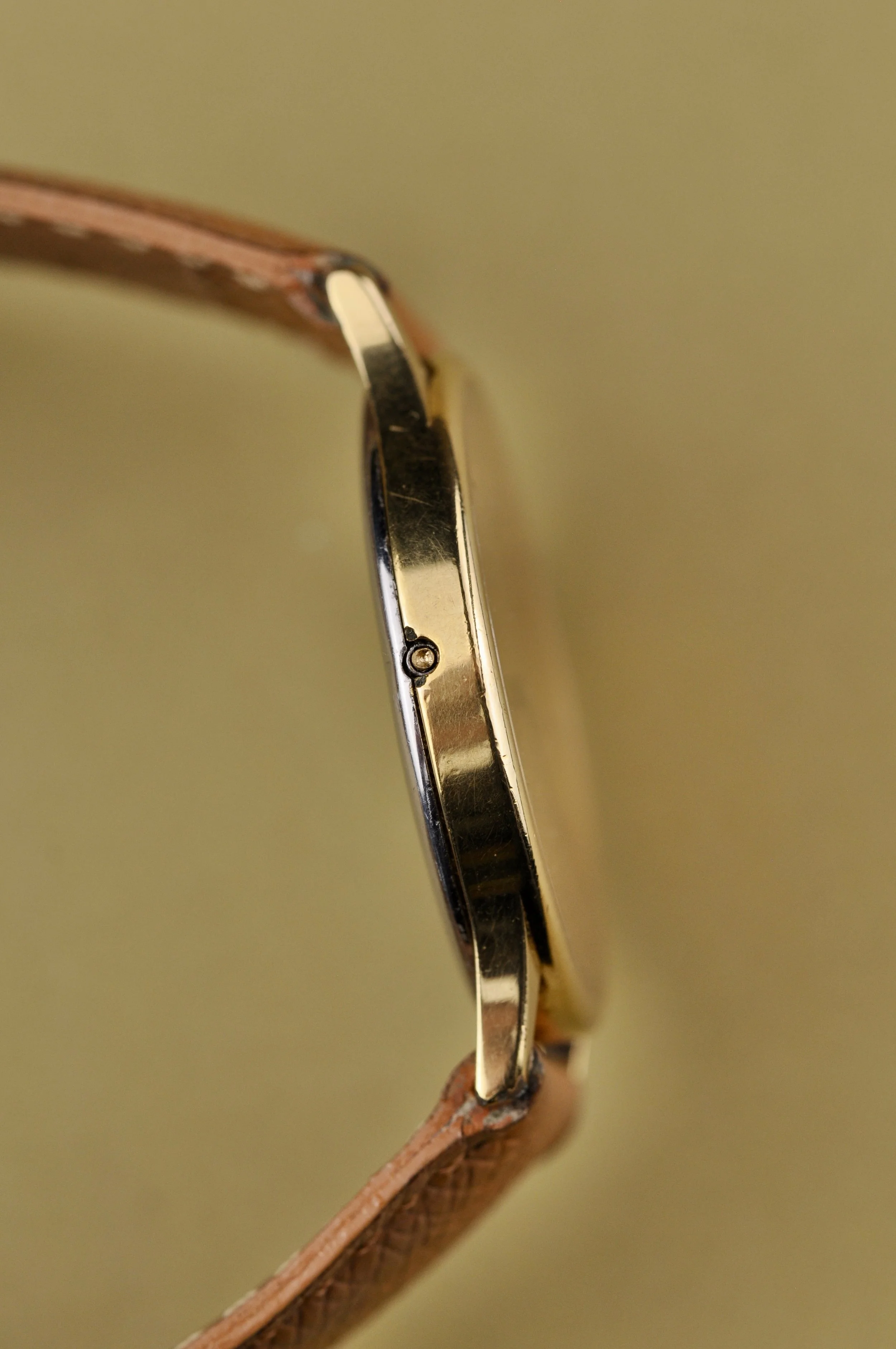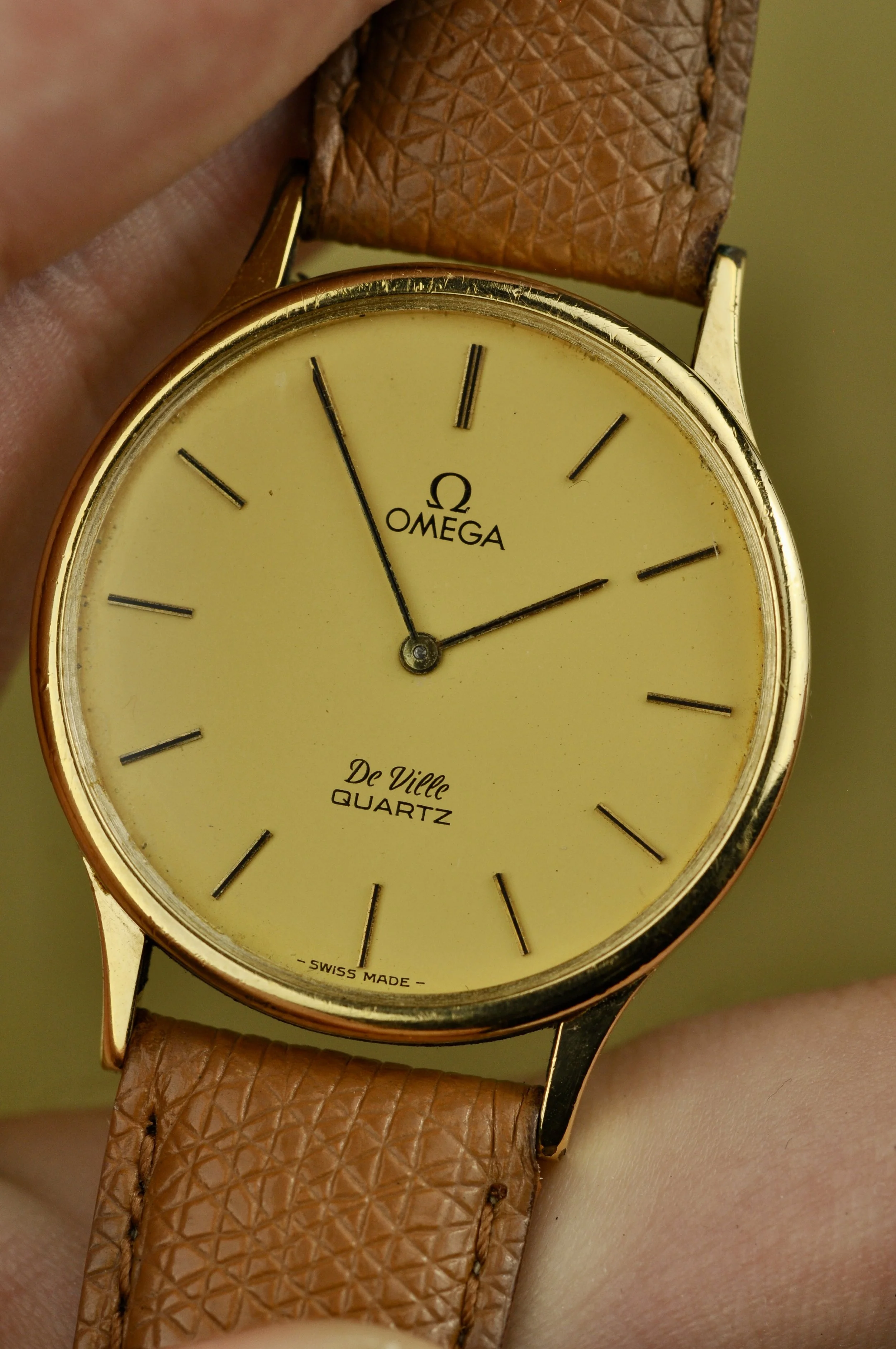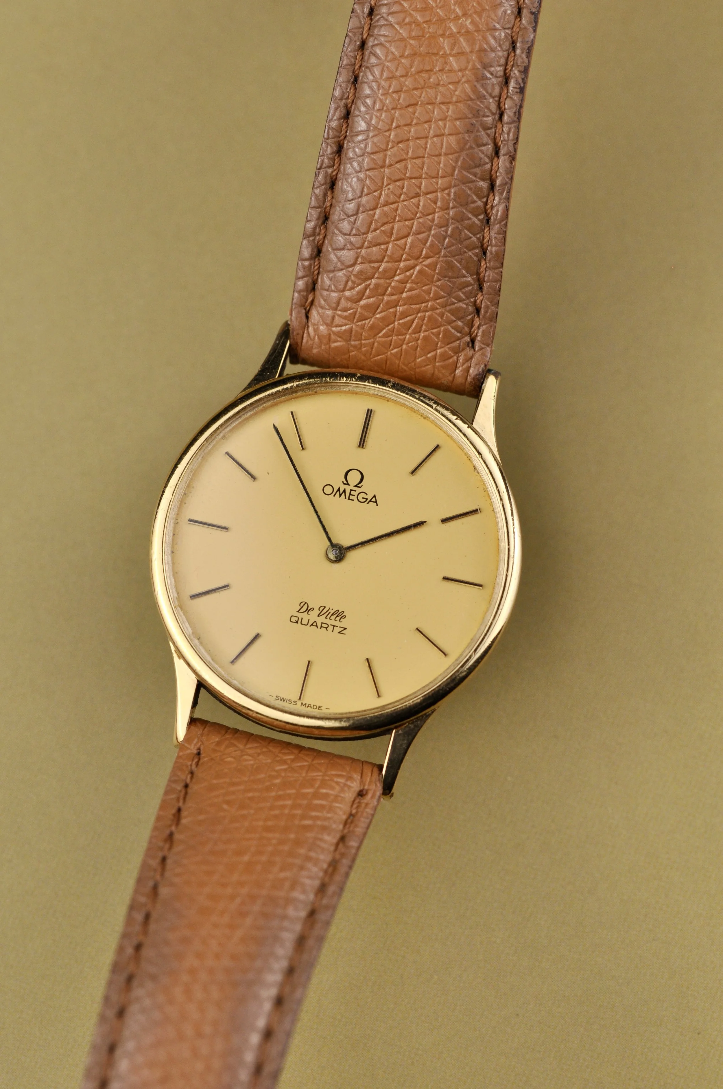 The Omega De Ville is a stunning watch that combines elegance with precision. Featuring a reliable quartz 1365 movement with 9 jewels, this timepiece offers accurate timekeeping in a beautifully crafted design. The watch is operated with a push-in button, enhancing its sleek and sophisticated appearance. Its golden dial and matching gold case are complemented by a sturdy steel back case, ensuring durability. Paired with a light brown leather strap and a steel buckle, the Omega De Ville perfectly balances luxury and comfort. With a compact 32mm case size, this watch is ideal for those who appreciate refined style and timeless elegance.